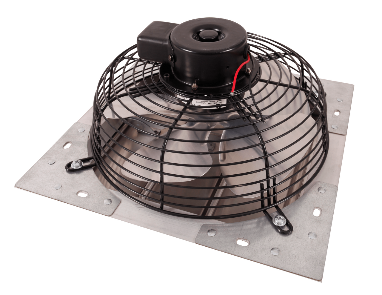 Shutter Mounted Exhaust Fan is perfect for removing excess heat, moisture, dust and odors from virtually any residential or commercial space. Applications include: workshops, welding rooms, restaurants, factories, warehouses, barns, and greenhouses. This wall mounted exhaust fan features aluminum blades, OSHA compliant wire guards, and automatic gravity shutters that open and close in conjunction with the operation of the fan. The completely enclosed motor is thermally protected and permanently lubricated. This fan comes fully assembled and ready to install out of the box.