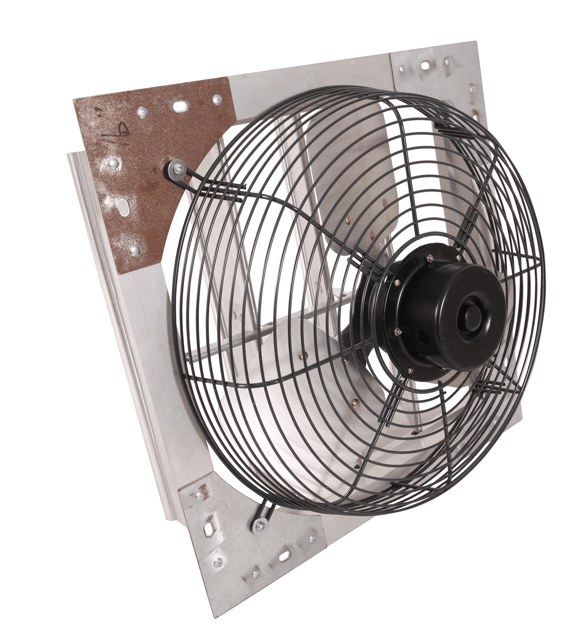 Shutter Mounted Exhaust Fan is perfect for removing excess heat, moisture, dust and odors from virtually any residential or commercial space. Applications include: workshops, welding rooms, restaurants, factories, warehouses, barns, and greenhouses. This wall mounted exhaust fan features aluminum blades, OSHA compliant wire guards, and automatic gravity shutters that open and close in conjunction with the operation of the fan. The completely enclosed motor is thermally protected and permanently lubricated. This fan comes fully assembled and ready to install out of the box.