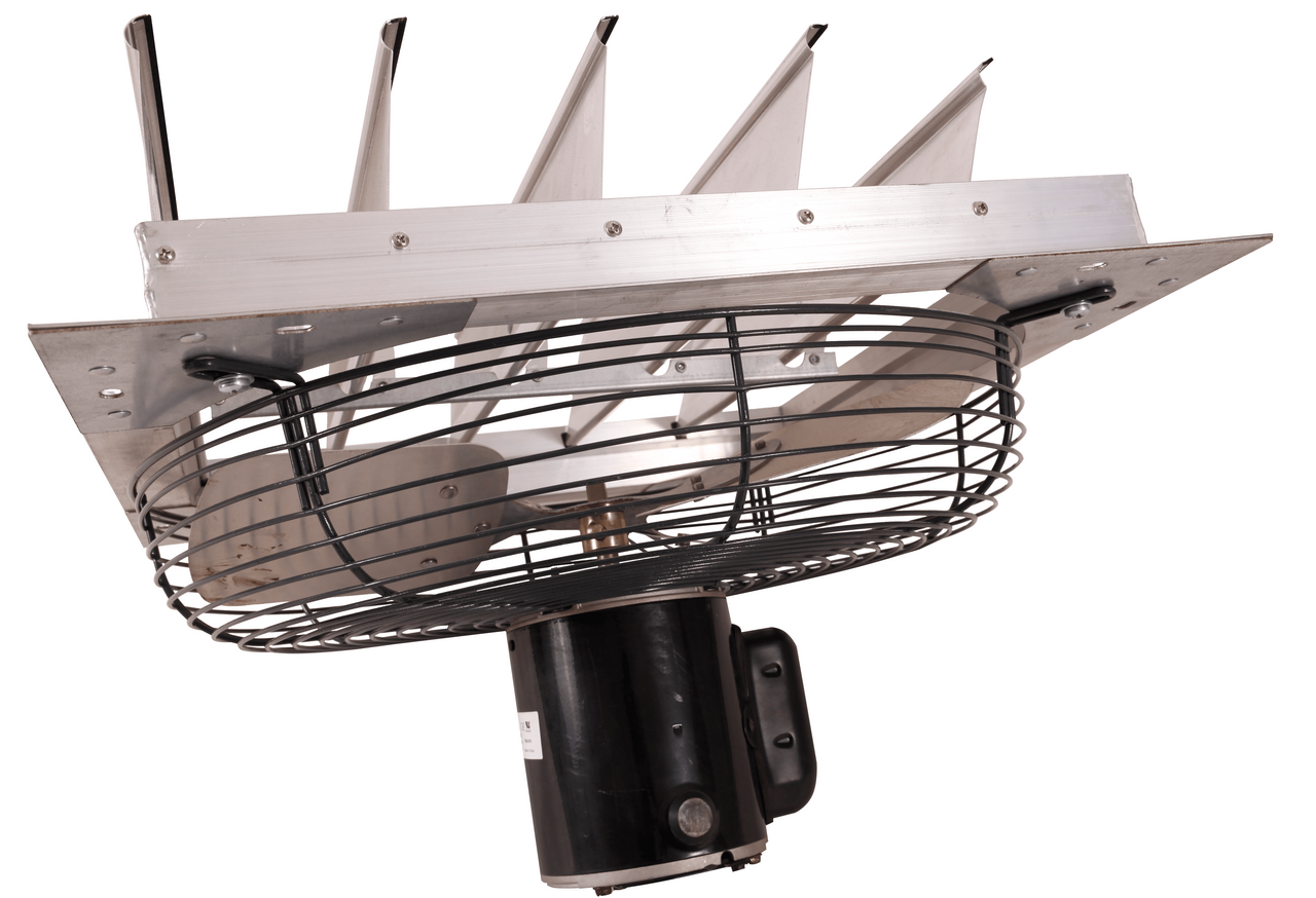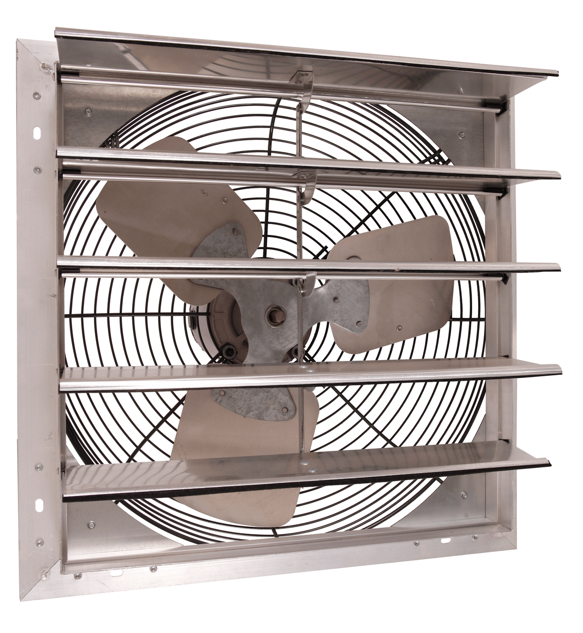 Shutter Mounted Exhaust Fan is perfect for removing excess heat, moisture, dust and odors from virtually any residential or commercial space. Applications include: workshops, welding rooms, restaurants, factories, warehouses, barns, and greenhouses. This wall mounted exhaust fan features aluminum blades, OSHA compliant wire guards, and automatic gravity shutters that open and close in conjunction with the operation of the fan. The completely enclosed motor is thermally protected and permanently lubricated. This fan comes fully assembled and ready to install out of the box.