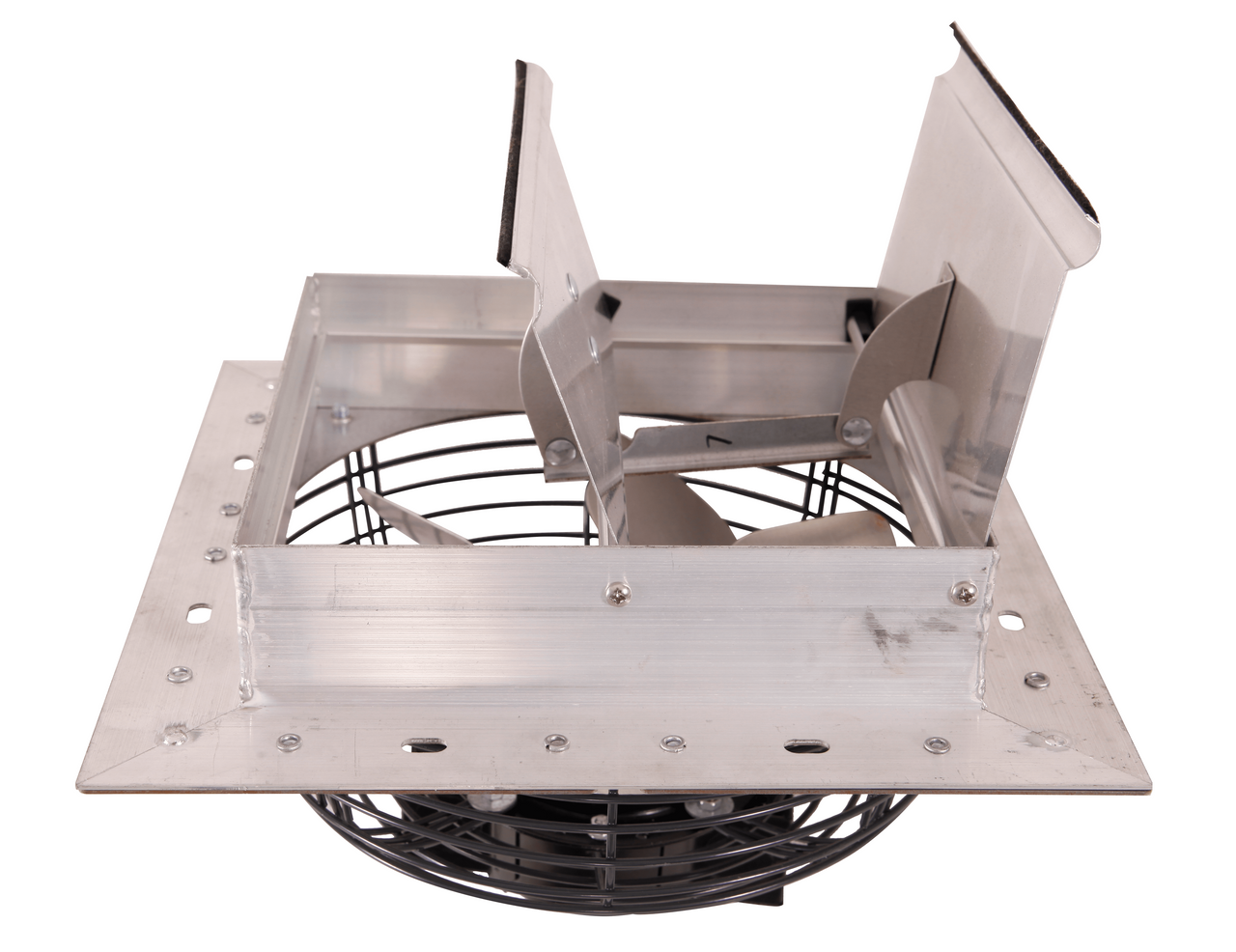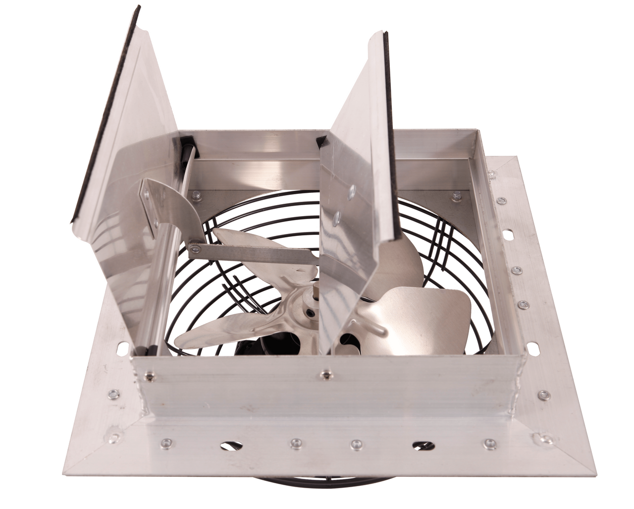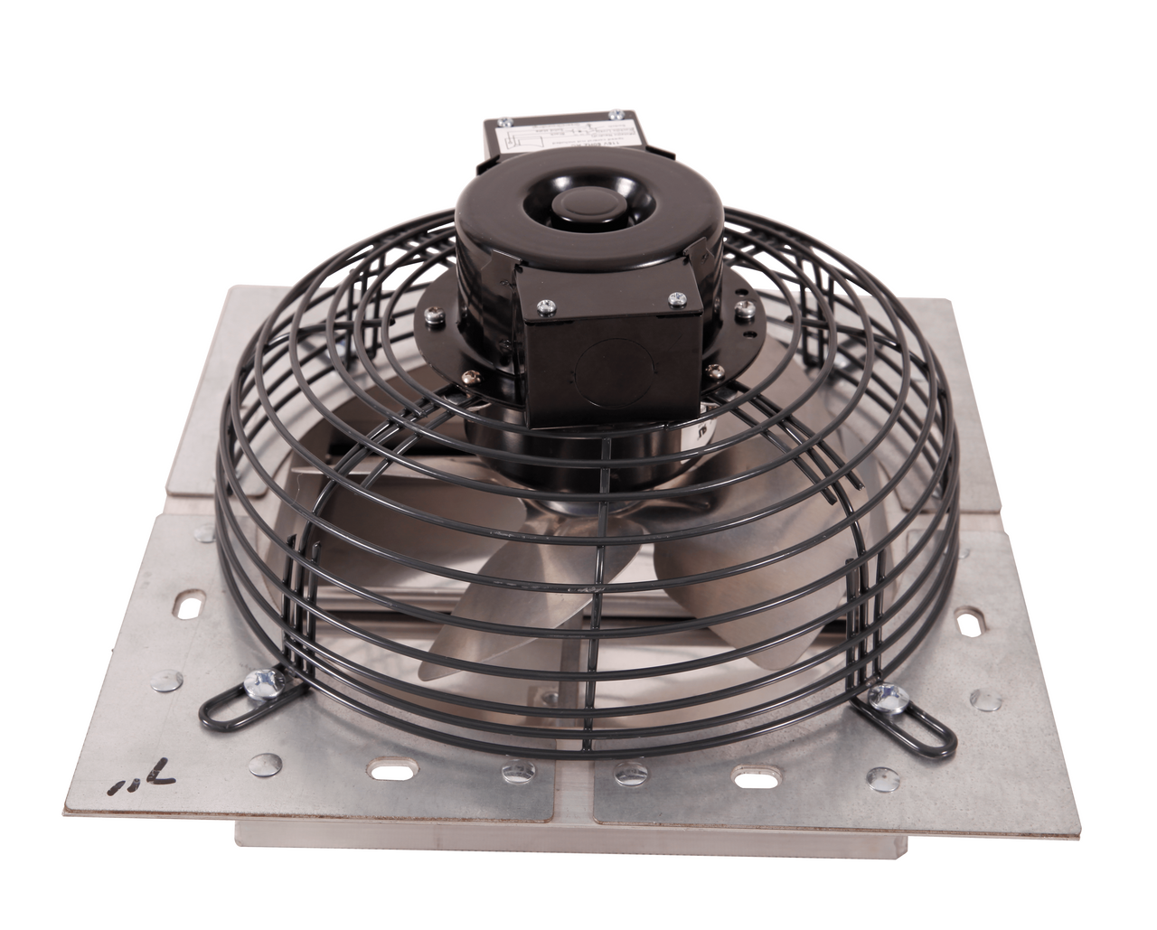 Shutter Mounted Exhaust Fan is perfect for removing excess heat, moisture, dust and odors from virtually any residential or commercial space. Applications include: workshops, welding rooms, restaurants, factories, warehouses, barns, and greenhouses. This wall mounted exhaust fan features aluminum blades, OSHA compliant wire guards, and automatic gravity shutters that open and close in conjunction with the operation of the fan. The completely enclosed motor is thermally protected and permanently lubricated. This fan comes fully assembled and ready to install out of the box.