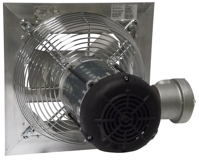 The AX series exhaust fan is a sturdily constructed, direct drive, horizontal discharge fan that is typically used for general ventilation of factories, garages, warehouses and other industrial or commercial buildings. The AX fans are available in multiple single-speed variations as well as two speed and variable speed models. The AX series housings are constructed of heavy duty aluminum with built in shutters that automatically open when the fan starts and gravity closes when the fan stops.