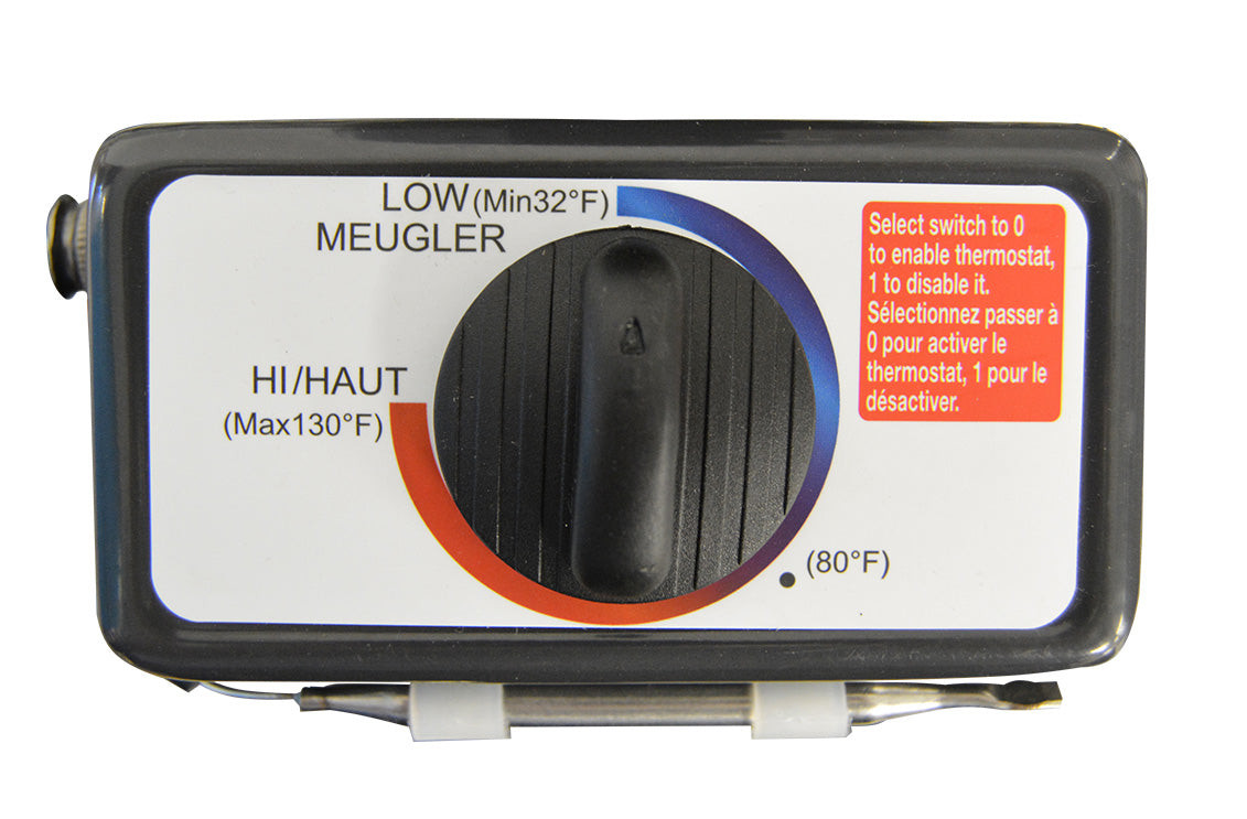 Complete with adjustable thermostat and bypass, temperature range 32 degrees Fahrenheit to 130 degrees Fahrenheit