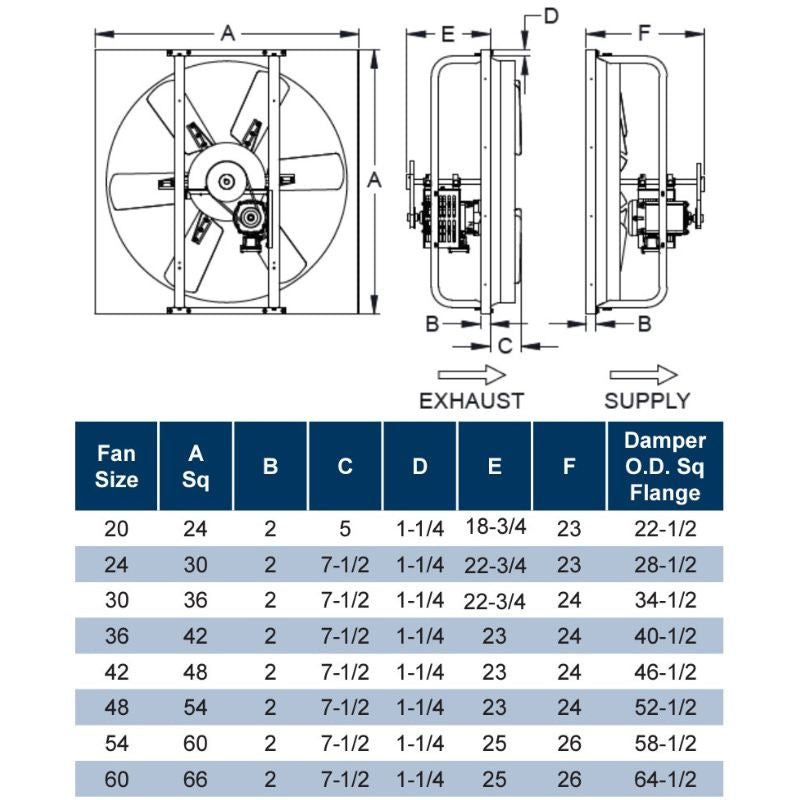 Specs for LCE Sidewall Exhaust Fan 36 inch 10341 CFM Belt Drive 1 Phase LCE36PH1S