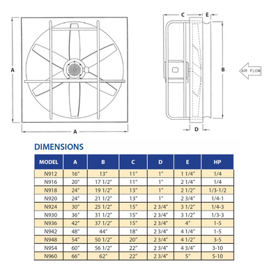 Specs for AirFlo-900 Panel Mount Supply Fan 18 inch 4150 CFM Direct Drive N918-C-1-T-S