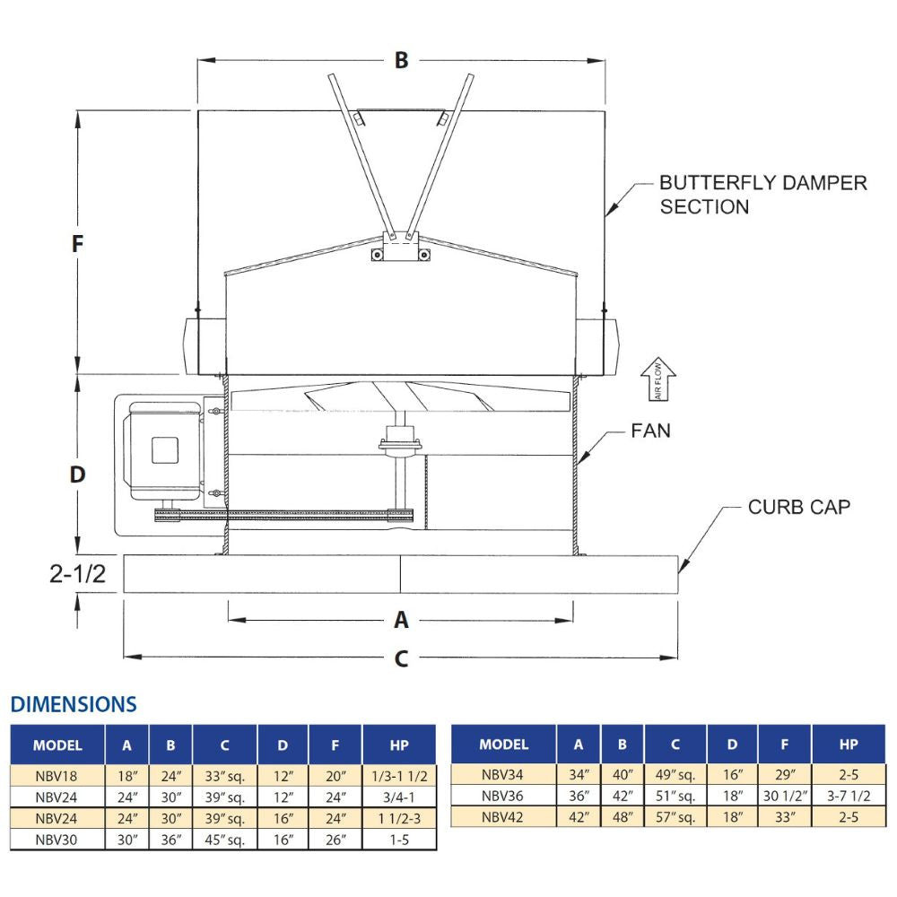 Specs for AirFlo-NBPV Upblast Roof Exhaust Fan 48 inch 33000 CFM Belt Drive 3 Phase NBPV48-IC3T