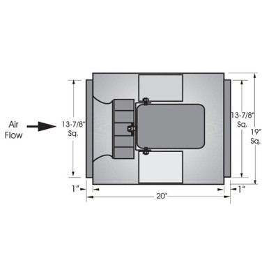 Butterfly damper section, mill galvanized construction, with damper blades that open when fan is energized and close weathertight when unit is off. Dampers rotate in nylon bearings on a stainless steel axle
