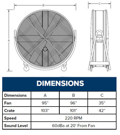 Motor and drive components located outside the airstream. Fan suitable for use in dry environments up to 180°F