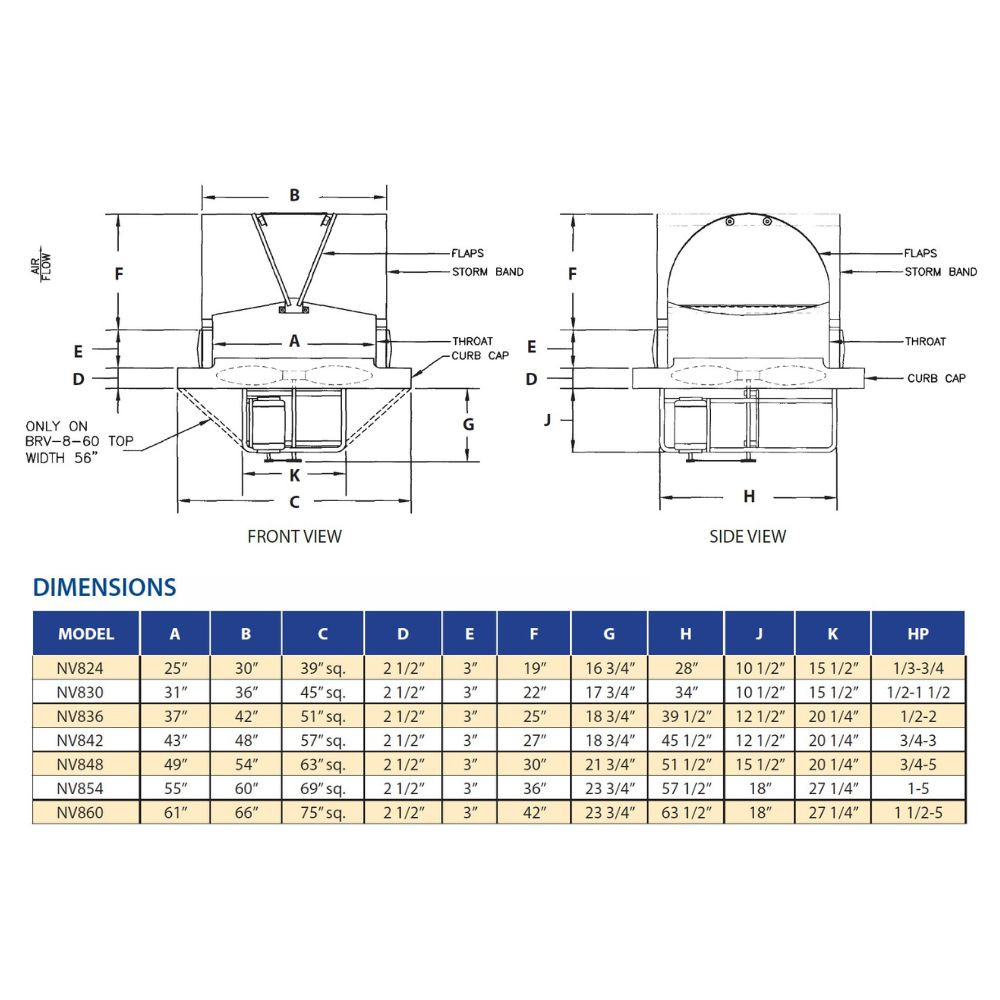 Specs for AirFlo-NV8 Upblast Roof Exhauster 48 inch 24274 CFM Belt Drive 3 Phase NV848-G-3-T