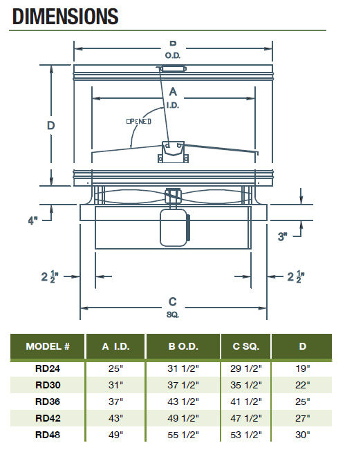 Specs for RD Upblast Roof Exhaust Fan 36 inch 16364 CFM Direct Drive 3 Phase RD36T3200DM