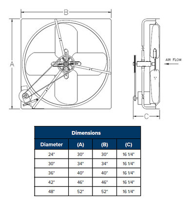 Specs for RV Panel Supply Fan 2 Speed 30 inch 6300 CFM Belt Drive RV3022