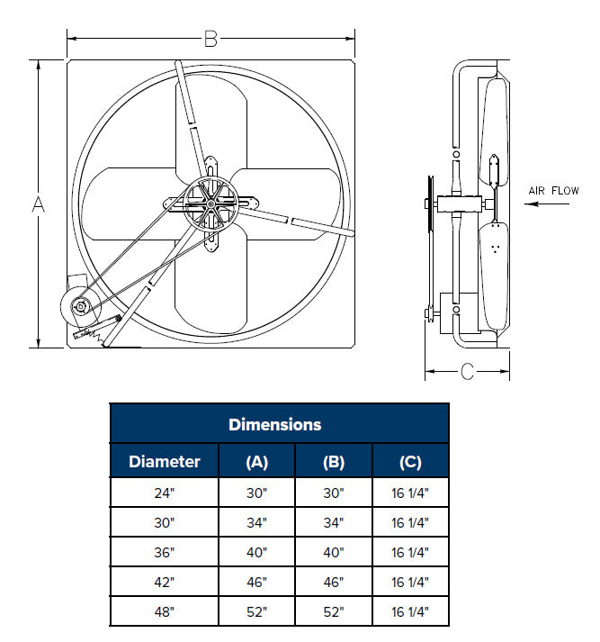 Specs for RV Panel Supply Fan 115/230 Volt 48 inch 18100 CFM Belt Drive RV4814-U