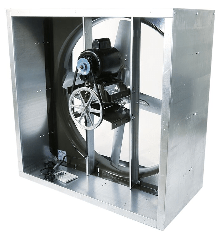 Triangle’s RVI Series Belt Drive Heavy Duty Industrial Supply Fans are designed to meet the supply airflow needs of factories, warehouses, gymnasiums, greenhouses, etc. The RVI Series Heavy Duty Industrial belt drive supply fans come standard with a polyester powder coated venturi to improve airflow and protect against corrosion as well as a heavy-gauge galvanized housing for corrosion resistance.