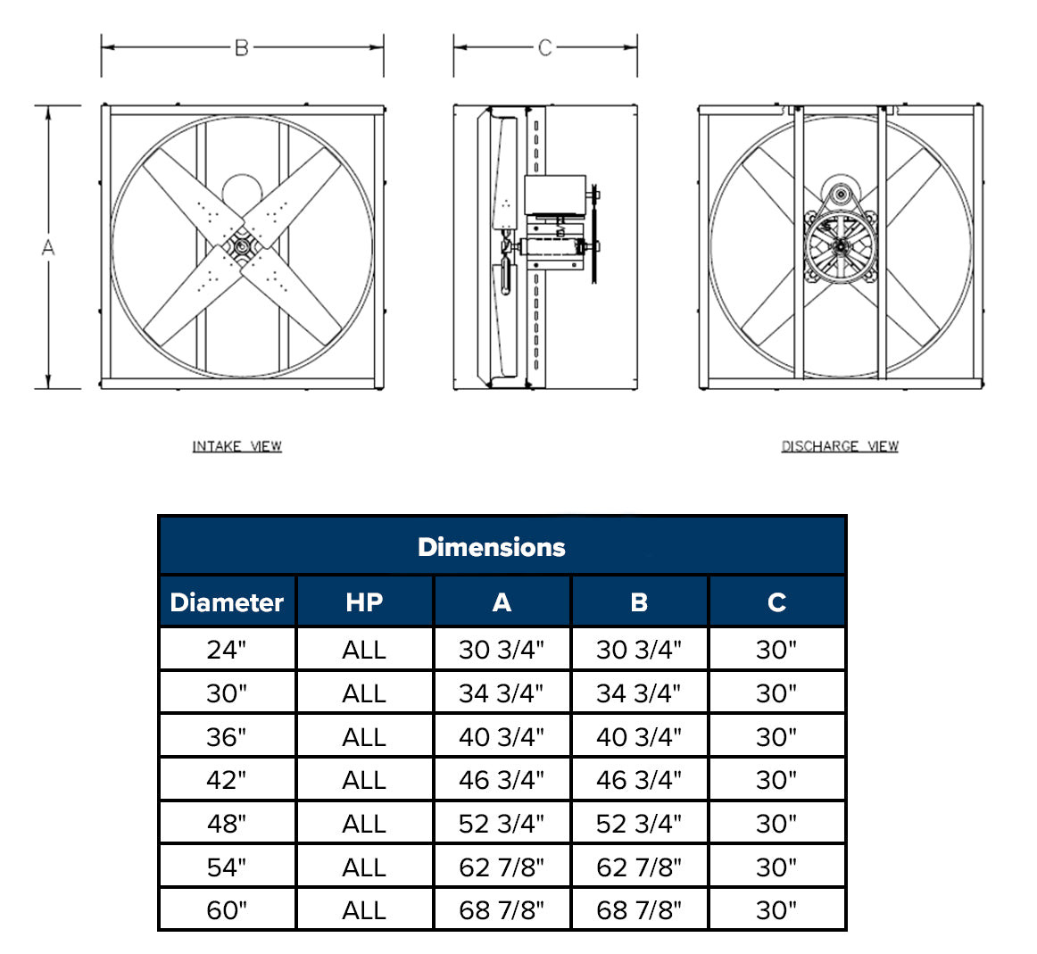Triangle’s RVI Series Belt Drive Heavy Duty Industrial Supply Fans are designed to meet the supply airflow needs of factories, warehouses, gymnasiums, greenhouses, etc. The RVI Series Heavy Duty Industrial belt drive supply fans come standard with a polyester powder coated venturi to improve airflow and protect against corrosion as well as a heavy-gauge galvanized housing for corrosion resistance.