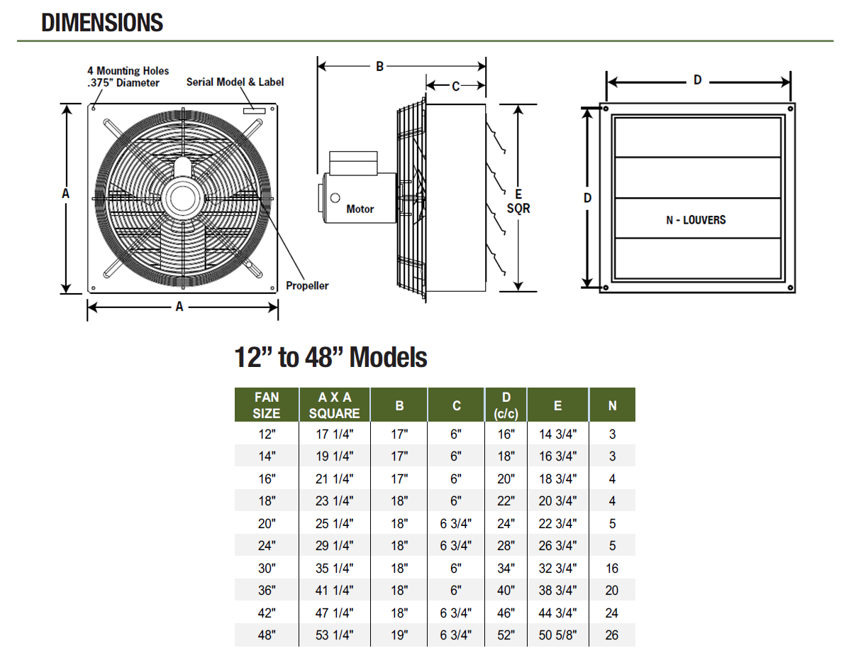 Specs for SD Exhaust Fan w/ Shutters 2 Speed 18 inch 3200 CFM Direct Drive S18-F2