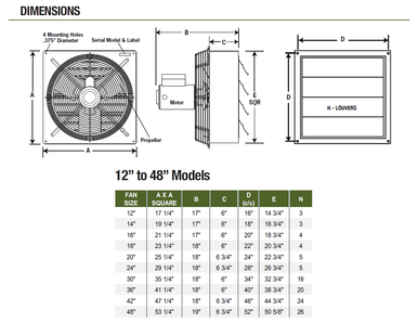 12” - 24” models have heavy wire chrome plated OSHA guards on intake side of fan