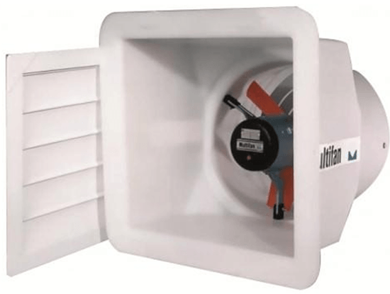 Outer fan housing is UV-treated polyethylene; sturdy and corrosion-free