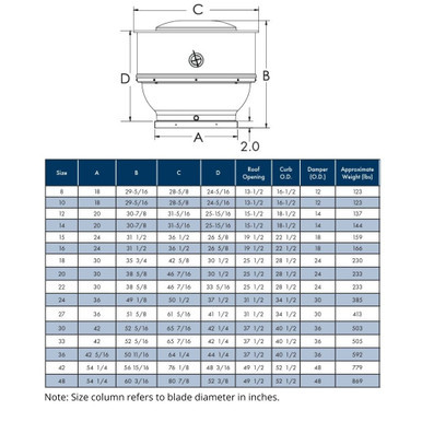 Specs for STXB Upblast Centrifugal Roof Exhaust 22 inch 6160 CFM Belt Drive STXB22RHULRH1S