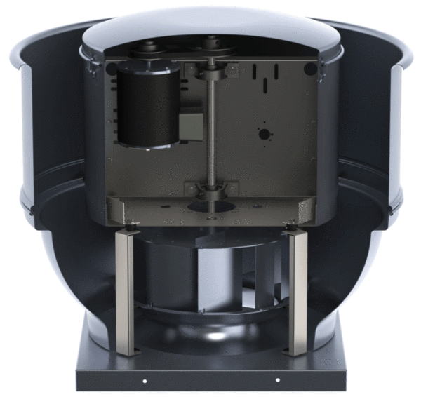 Isolation of motor and drive components from the airstream and the high velocity vertical air discharge make the Model STXB ideally suited for the removal of dirty contaminated and/or high temperature air from processes and buildings. Typical applications include restaurant hoods and similar kitchen exhaust ventilation, fume and smoke removal, laboratory fume hood exhaust and chemical process exhaust.