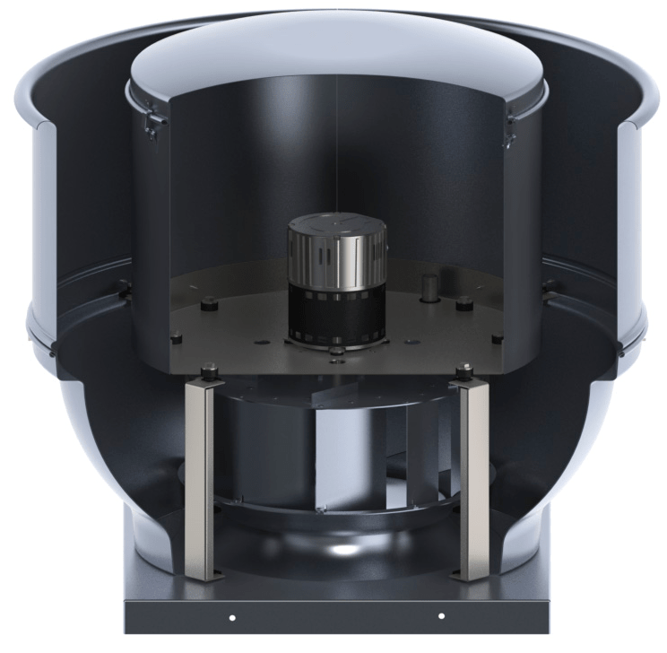Isolation of the motor from the air stream and the high velocity vertical (roof) or horizontal (wall) air discharge make the Model STXD ideally suited for the removal of dirty, contaminated and/or high temperature air from processes and buildings. Typical applications include restaurant hoods and similar kitchen exhaust ventilation, fume and smoke removal, laboratory fume hood exhaust and chemical process exhaust.