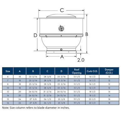 Specs for STXD Upblast Centrifugal Roof Exhaust 8 inch 612 CFM Direct Drive STXD08HM1AS