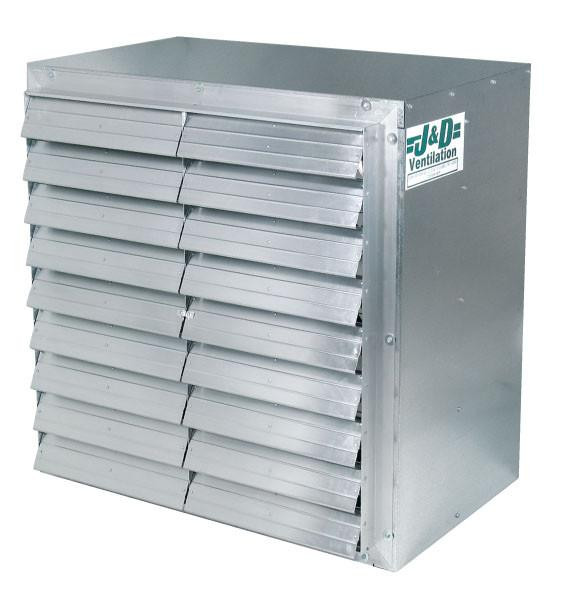 J&D Manufacturing's Wall Master exhaust fan offers high volume output and smooth, efficient operation. The heavy duty 18 gauge galvanized housing is strong, compact, and easy to install. J&D's Wall Master is a dependable fan suited for nearly any application including agricultural buildings, greenhouses, and warehouses.