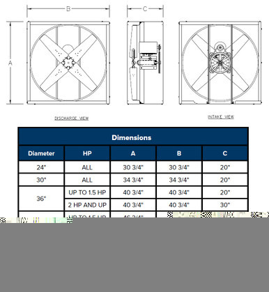 Specs for VI Cabinet Exhaust Fan 36 inch 12780 CFM 230/460 Volt Belt Drive 3 Phase VI3617-X