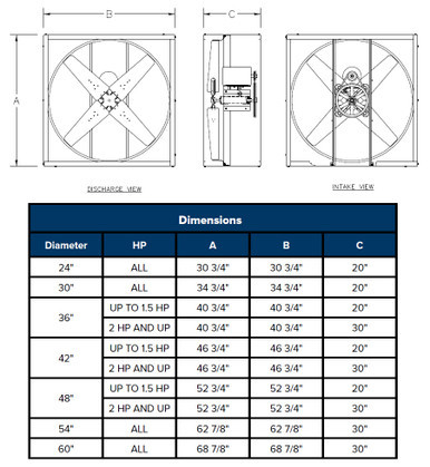 Specs for VI Cabinet Exhaust Fan 42 inch 16800 CFM 115/230 Volt Belt Drive VI4217-U