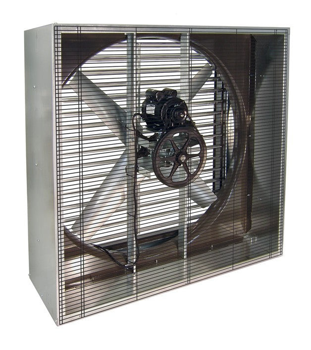 Triangle’s VIK Series Heavy Duty Industrial Exhaust belt drive fan packages are designed to meet the exhaust airflow needs of factories, warehouses, gymnasiums, greenhouses, and more. VIK Series exhaust fan packages come standard with installed IWS shutters and VIG guards. The VIK Series Heavy Duty Industrial Exhaust fan packages come with a polyester powder coated venturi to improve airflow and protect against corrosion and a heavy-gauge galvanized housing for corrosion resistance.