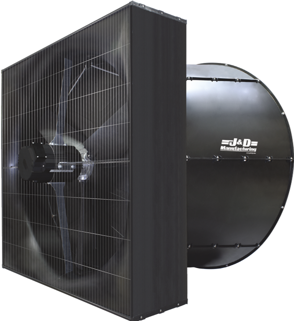 The Magnum 58" Exhaust Fan uses a maintenance free direct drive permanent magnet motor. It eliminates the need for greasing bearings and changing belts. The housing is made of strong poly while the frame is all stainless-steel preventing rust and corrosion in any environment. The complete fan includes durable poly damper doors that seal out air and light when closed.