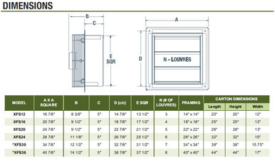Specs for XFS Shutter Exhaust Fan w/ 9' Cord 3 Speed 12 inch 1100 CFM XFS12